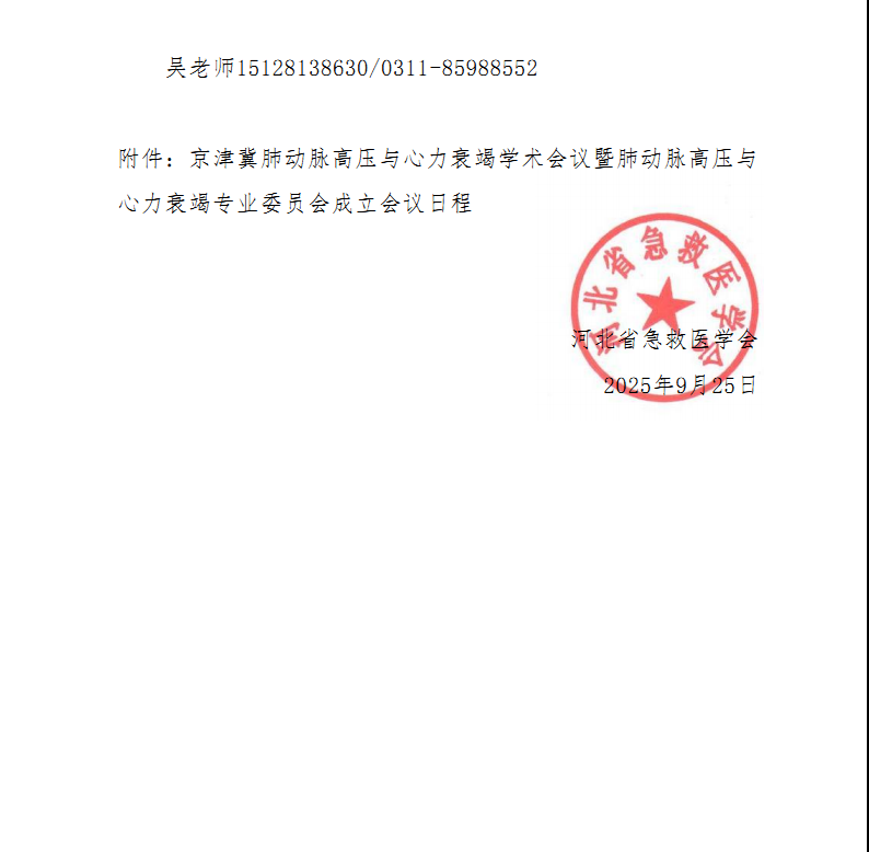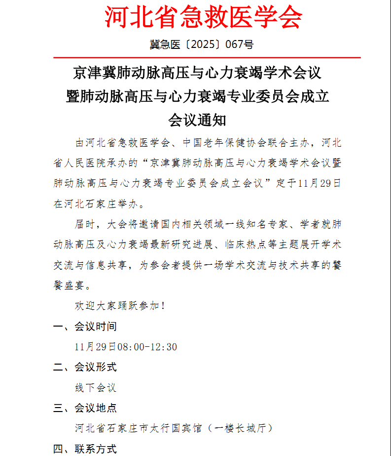京津冀肺动脉高压与心力衰竭学术会议暨肺动脉高压与心力衰竭专业委员会成立会议通知