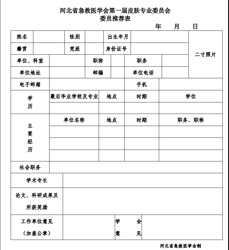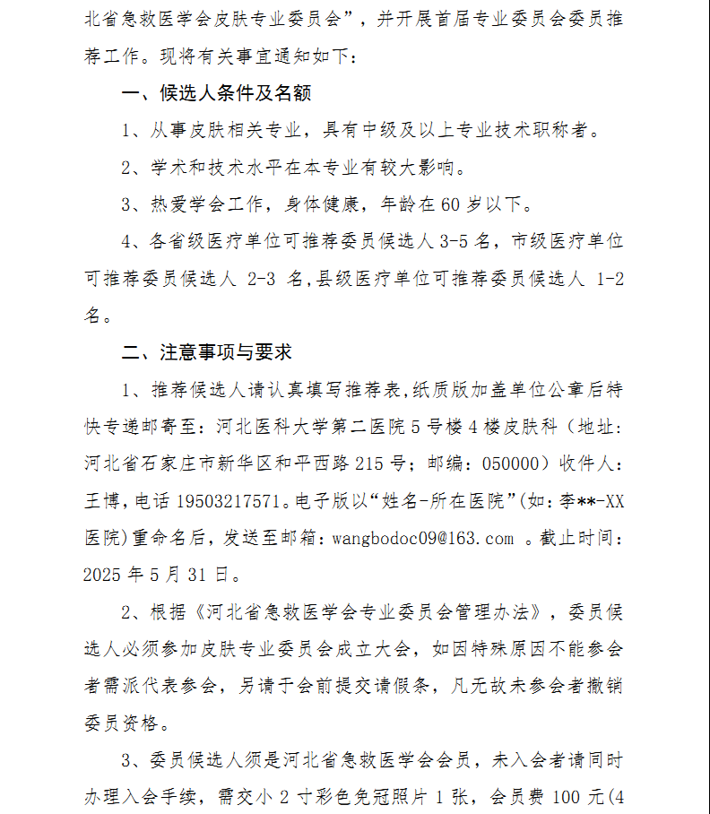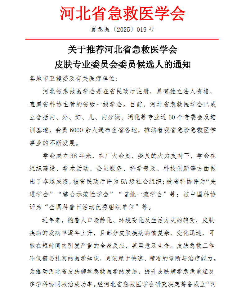 关于推荐河北省急救医学会 皮肤专业委员会委员候选人的通知
