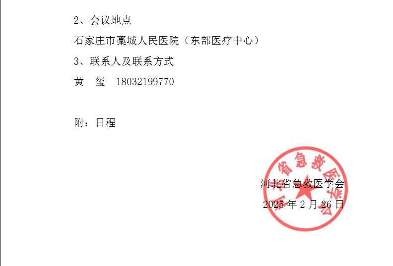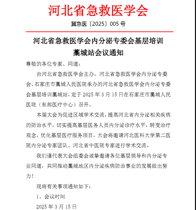 河北省急救医学会内分泌专委会基层培训 藁城站会议通知