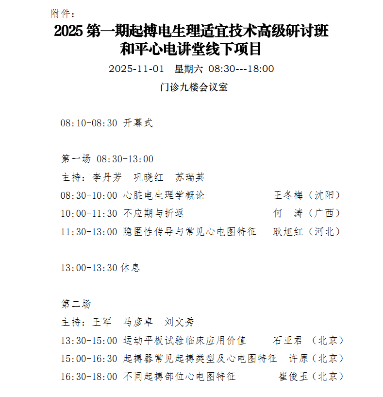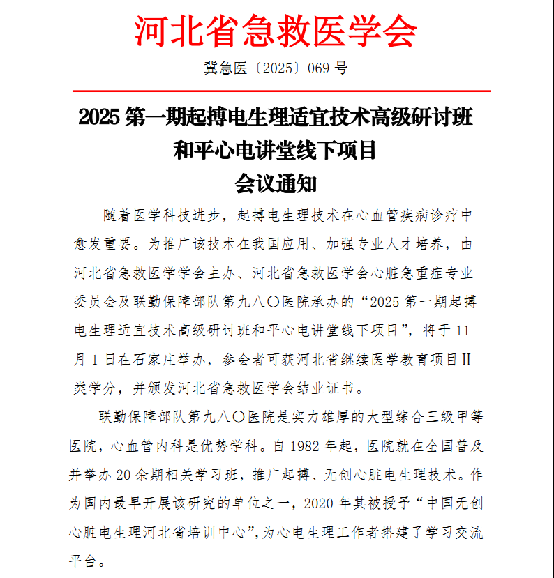 2025 第一期起搏电生理适宜技术高级研讨班和平心电讲堂线下项目会议通知