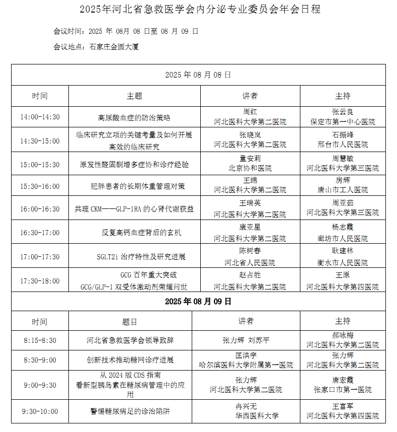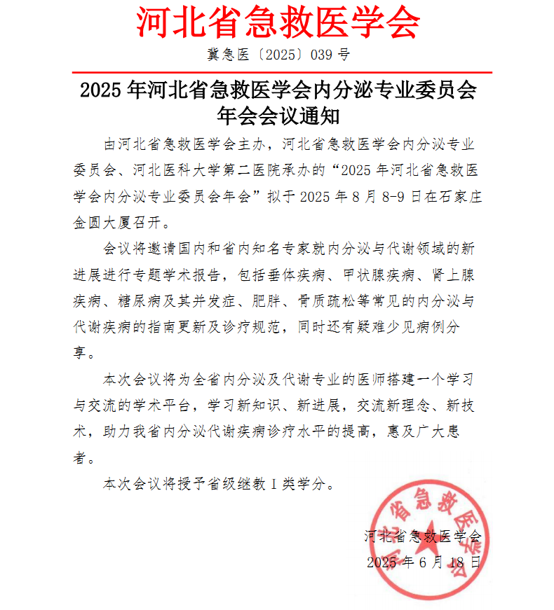 2025年河北省急救医学会内分泌专业委员会年会会议通知