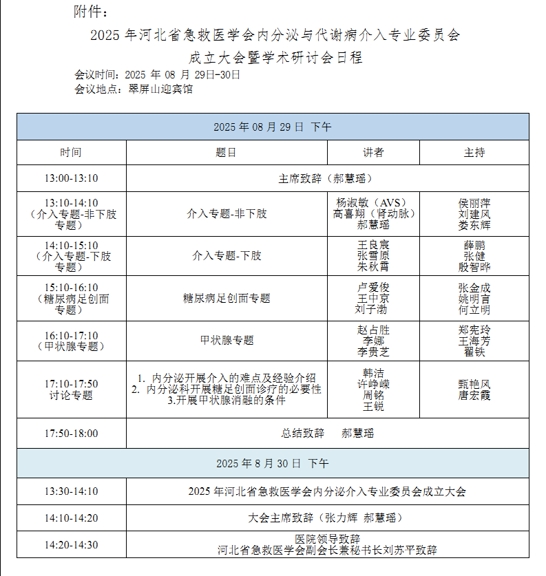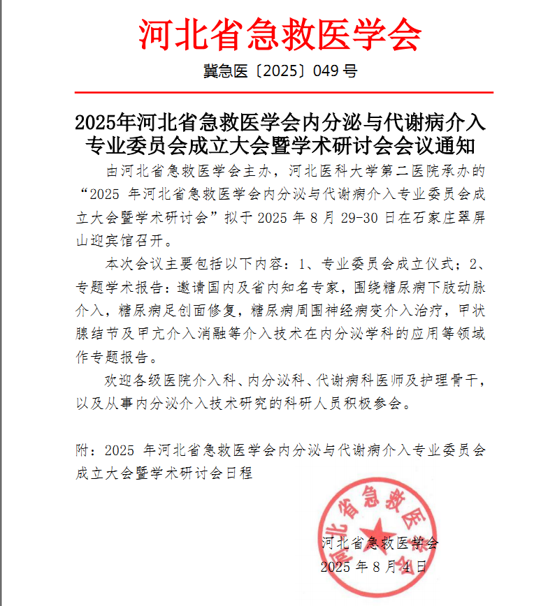 2025年河北省急救医学会内分泌与代谢病介入 专业委员会成立大会暨学术研讨会会议通知