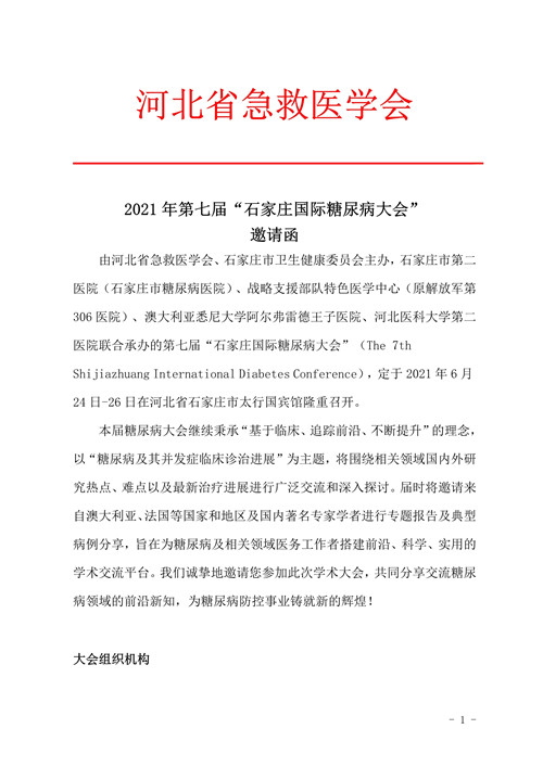 2021年第七届“石家庄国际糖尿病大会” 邀请函